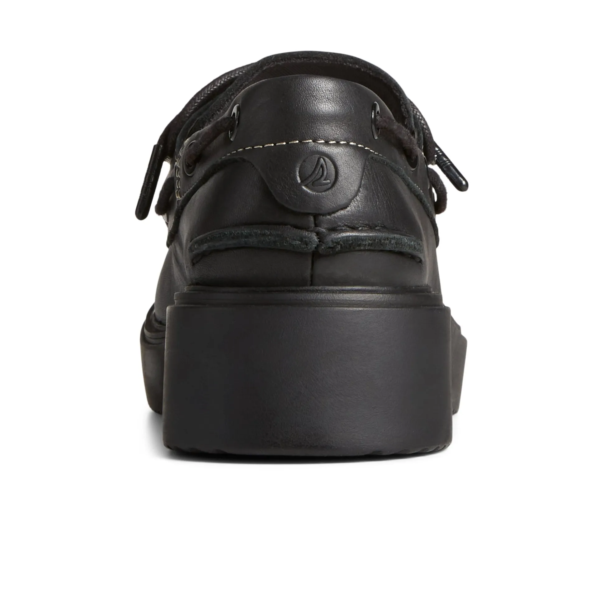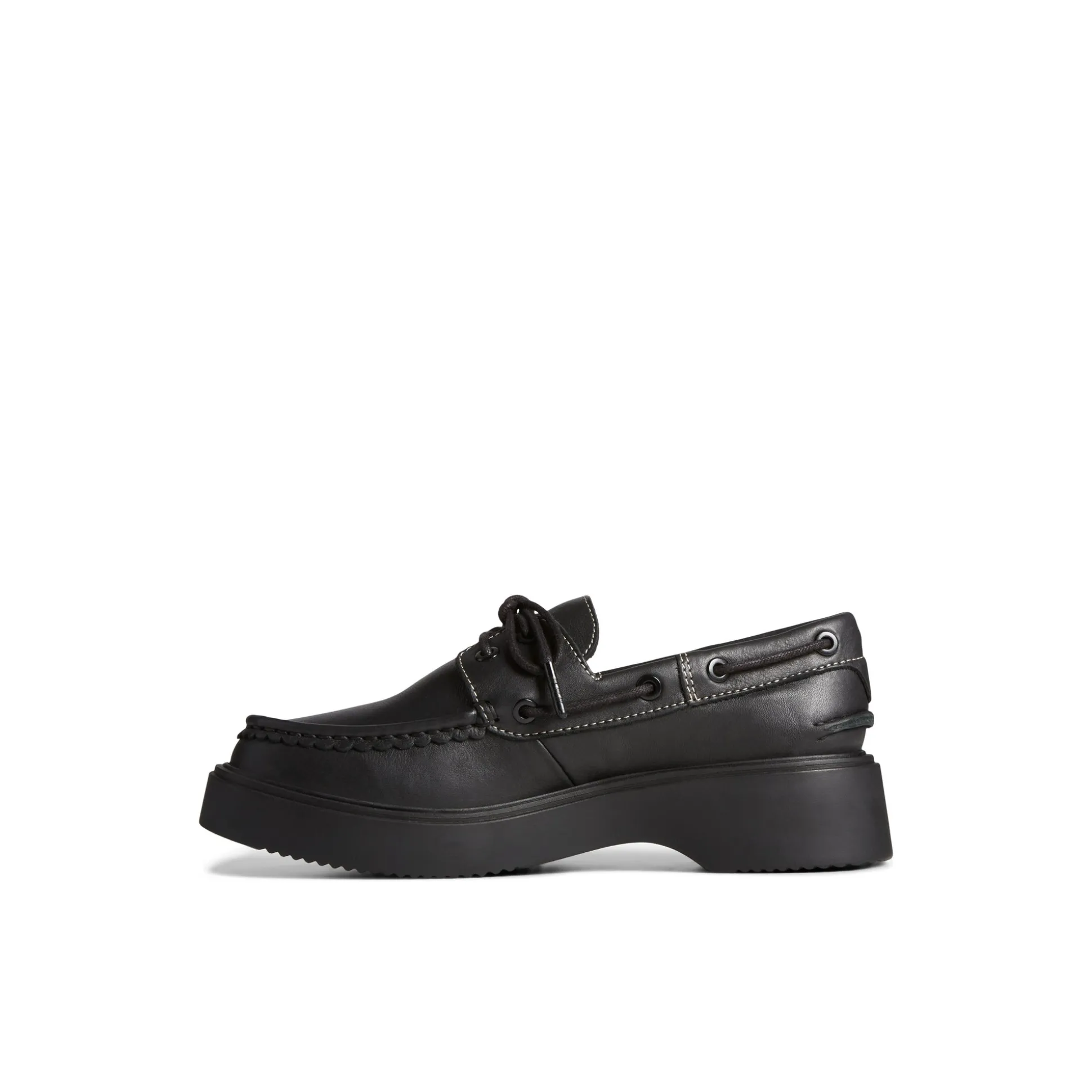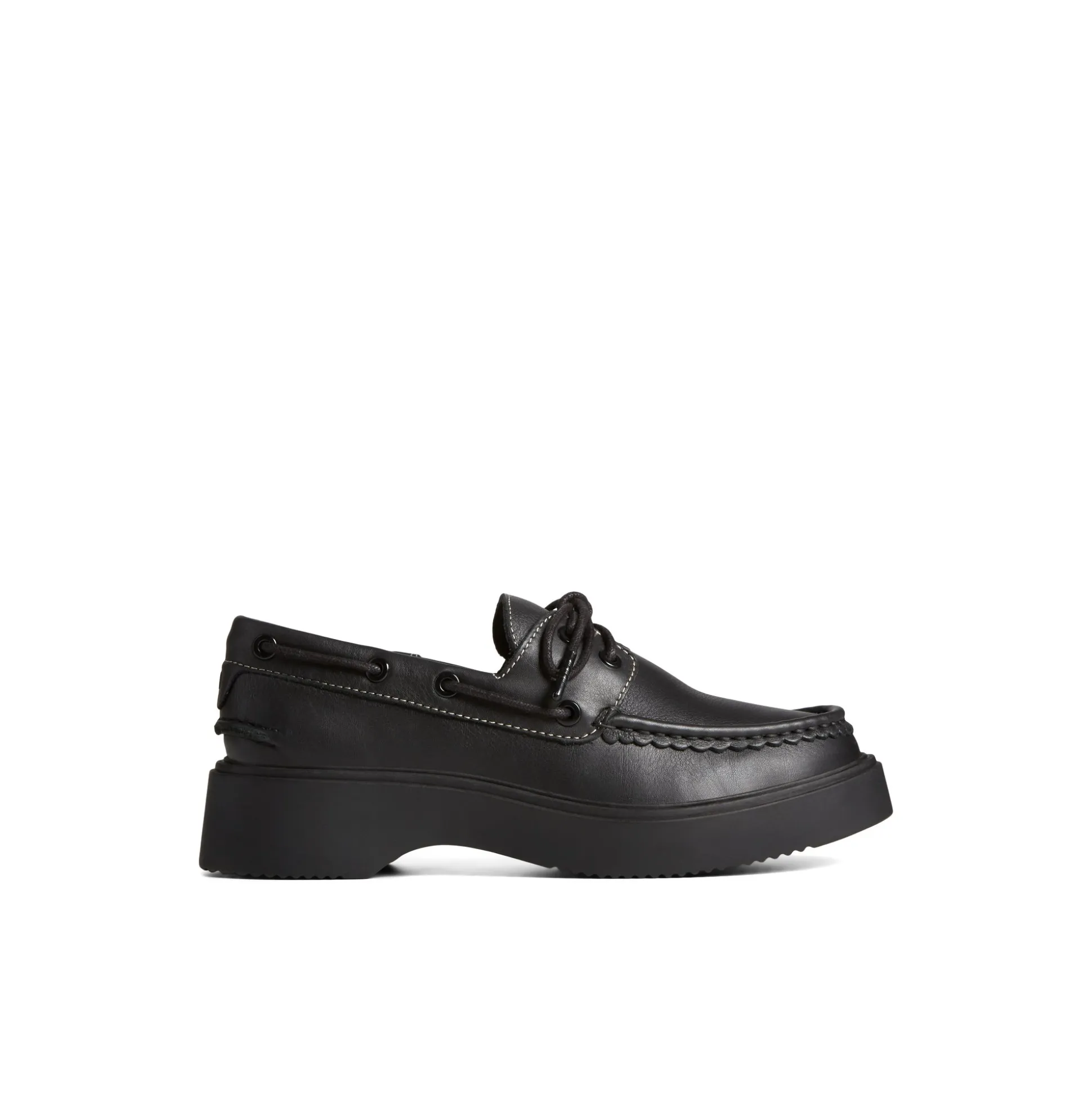 Our Authentic Original™ boat shoe gets an on-trend update just in time for spring in the Bayside Boat Leather. Flaunting a full-grain leather upper and an oversized chunky outsole, this shoe is all about the details. The scalloped edge around the toe creates a more feminine feel, while the slightly pitched platform adds comfort and all-day wearability. Take this flirty, fun take on a nautical classic out to dinner, on the town, or anywhere you want to make a statement. Full-grain leather upper. 3.5mm round waxed cotton with metal barrel aglet. Scalloped moc toe detail​. Slight pitch instead of fully flat platform for added comfort and wearability.