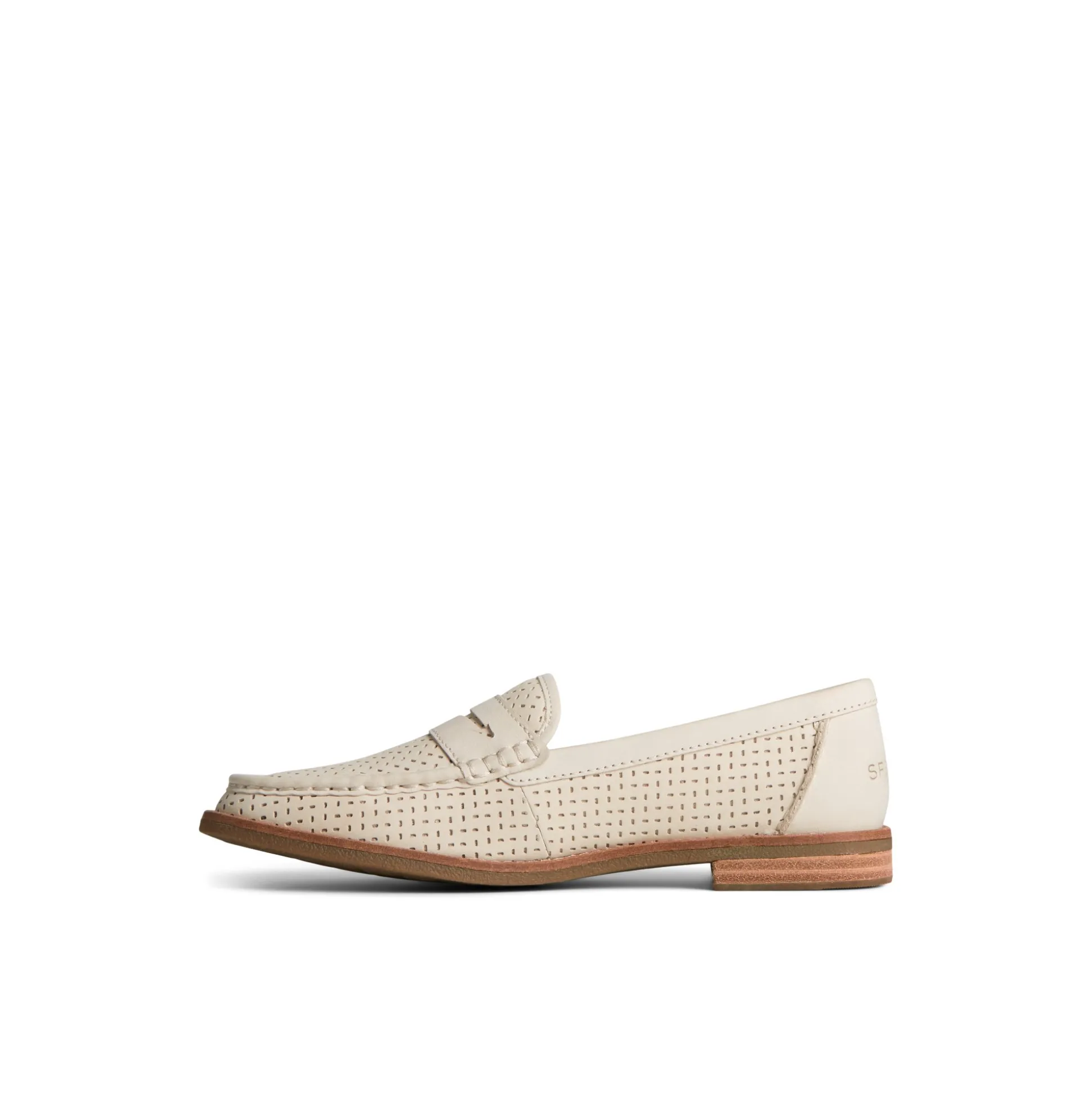 The Seaport Penny is our seafaring take on the classic penny loafer. This shoe pulls in the moccasin construction with a traditional penny loafer feel. Keep it preppy with white jeans and a blazer or wear it under pleated skirts and chino shorts. Moccasin construction with traditional penny look. Premium leather upper, with perforated detail throughout vamp and sidewalls. Memory foam footbed. Non-marking flexible rubber outsole.